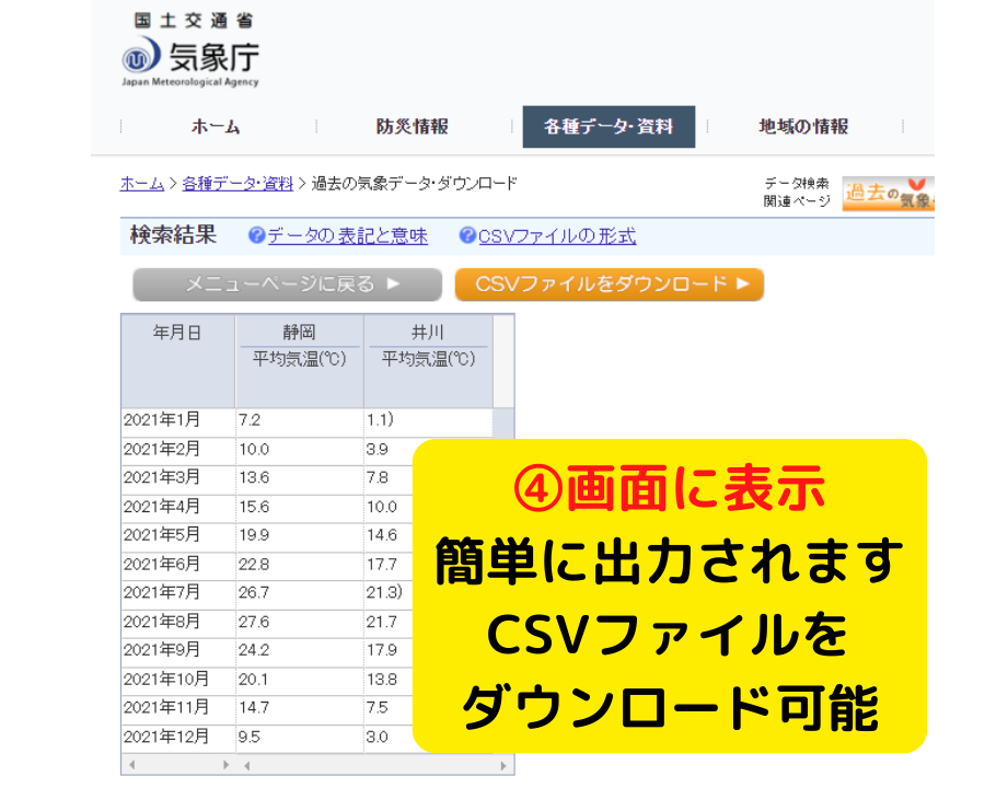 - 気象庁のホームページから気象データを簡単に取得できる
